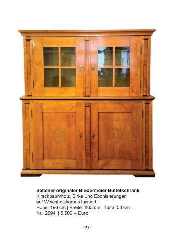 -23-Seltener originaler Biedermeier BuffetschrankKirschbaumholz, Birke und Ebonisierungen auf Weichholzkorpus furniert. H%u00f6he: 196 cm | Breite: 163 cm | Tiefe: 58 cm Nr.: 2694 | 5.500,-- Euro