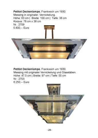 -28-Petitot Deckenlampe. Frankreich um 1930.Messing mit originaler Vernickelung und Glasst%u00e4ben.H%u00f6he: 47,5 cm | Breite: 97 cm | Tiefe: 55 cmNr.: 27036.250,-- EuroPetitot Deckenlampe. Frankreich um 1930.Messing in originaler. Vernickelung.H%u00f6he: 63 cm | Breite: 100 cm | Tiefe: 38 cm Korpus: 78 cm x 38 cmNr.: 27095.800,-- Euro