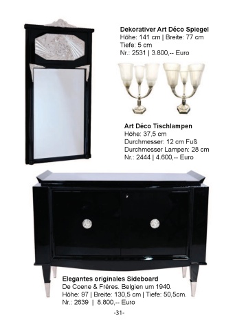 -31-Elegantes originales Sideboard De Coene & Fr%u00e8res. Belgien um 1940.H%u00f6he: 97 | Breite: 130,5 cm | Tiefe: 50,5cm.Nr.: 2639 | 8.800,-- EuroArt D%u00e9co TischlampenH%u00f6he: 37,5 cm Durchmesser: 12 cm Fu%u00dfDurchmesser Lampen: 28 cmNr.: 2444 | 4.600,-- EuroDekorativer Art D%u00e9co SpiegelH%u00f6he: 141 cm | Breite: 77 cmTiefe: 5 cmNr.: 2531 | 3.800,-- Euro